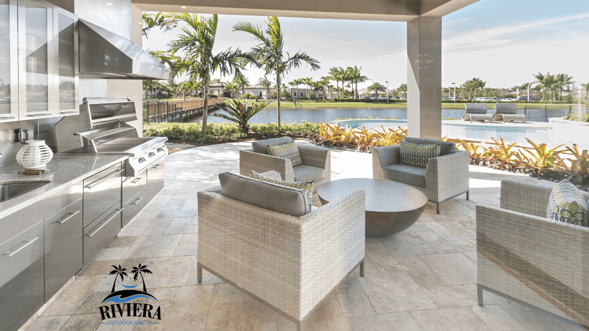For our clientele at Riviera Outdoor Décor, we have not seen a trend in bold color choices. Our clients prefer to coordinate with the existing architecture of their home. In our coastal area, sustainable is in high-demand with our marine grade outdoor kitchens and outdoor kitchen appliances.