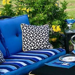 The right materials are just as important as the correct outdoor cushion. Unfortunately, outdoor cushions are where people attempt to skimp. An outdoor cushion can and should last fifteen years or more when manufactured correctly. It is the outdoor cushion that in essence shields the frame from all the outdoor elements. So, do not go cheap. Your outdoor cushion and pillow should immediately drain and not absorb water in order to avoid mold or mildew. The selection of outdoor foam is crucial. At Riviera Outdoor Décor, our custom made outdoor cushions and pillows are weather resistant, marine grade and we use only top grade foam.