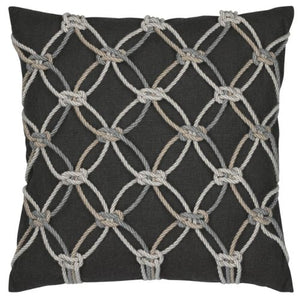Creating visual interest and dimensional texture, this signature design features hand-knotted ropes in coordinating colors. Handmade by the dedicated team of Elaine Smith artisans in West Palm Beach, Florida, this pillow elevates every piece of furniture it adorns.