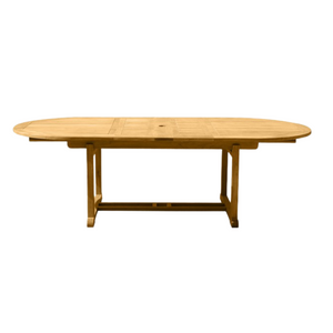 Teak Outdoor Dining Table Oval 74"-98", From the Chelsea Collection of Three Birds Casual. The Chelsea Butterfly Extension Dining Table offers versatility and style.