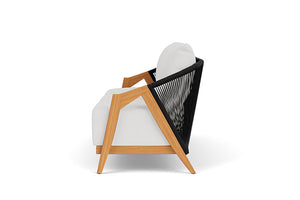 Modern and luxurious with unassuming ease defines the Alpine Collection. A solid premium teak frame is wrapped with weather resistant nautical rope in charcoal to create a beautifully simple, fresh silhouette.