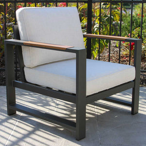 (2) Sienna Black Aluminum Armchair, w Ivory Olefin Cushions